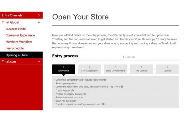 - International Presence: Your company must be registered outside Mainland China to apply for a Tmall Global store.
